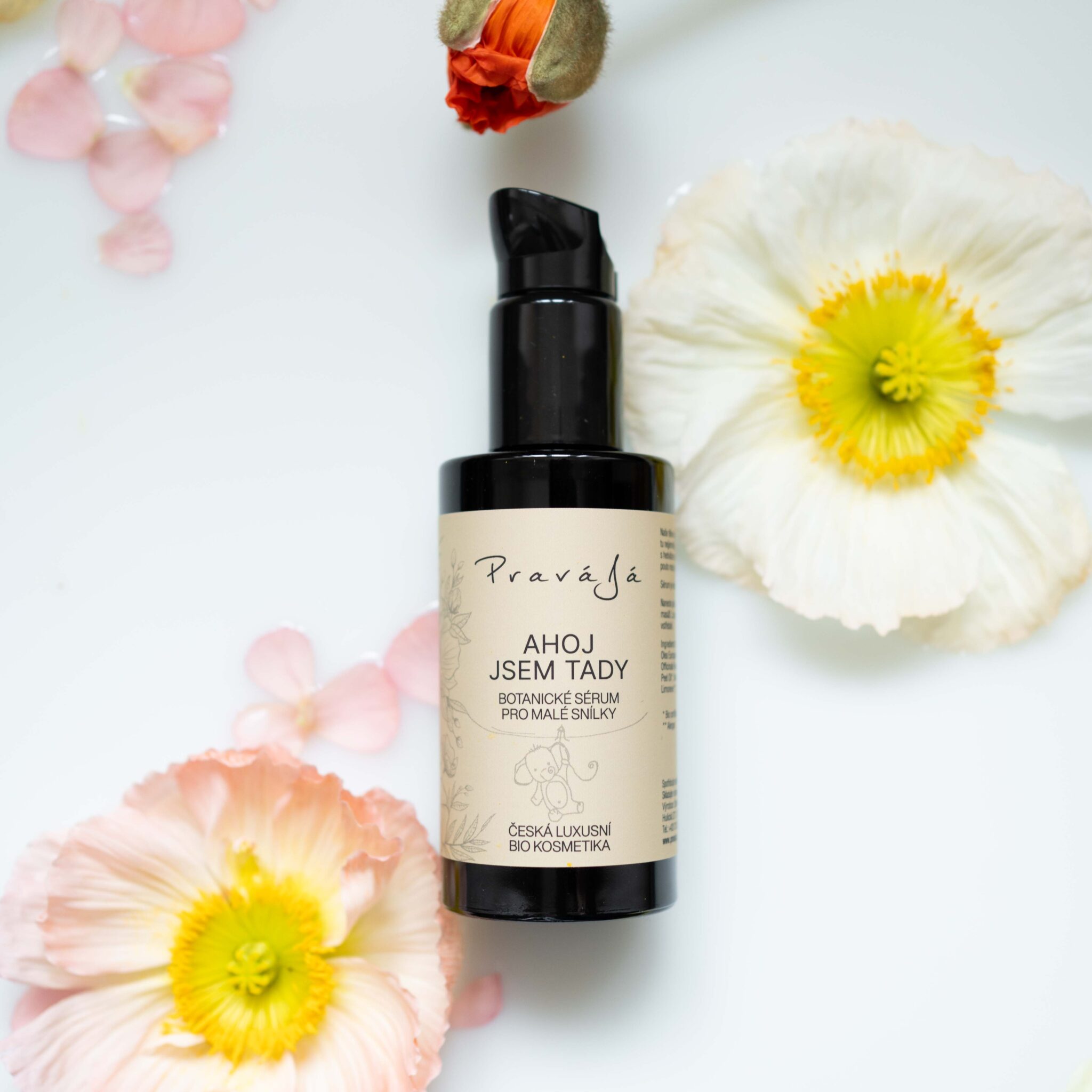 Tělové botanické sérum Ahoj. Jsem Tady pro miminka a děti je speciálně vytvořeno pro okamžik, kdy se ticho nadechne a zrodí se nový život. Nová vůně. Nový rytmus a pokožka, která je jemnější než cokoli, čeho jsme se kdy dotýkali. Dětský olej Ahoj. Jsem tady vznikl jako přirozené pokračování příběhu Čekám Tě. Stejná filozofie. Stejná čistota. Stejná nekompromisní volba surovin. Základ tvoří organický avokádový olej. Král péče. Stejně jako u Čekám Tě jsme zůstali věrni avokádu. Pro jeho hloubku, výživu a schopnost posilovat kožní bariéru bez zatížení. Doplňuje ho organická jojoba, která svou strukturou připomíná přirozený kožní maz, a měsíček macerovaný v olivovém oleji, který konejší a chrání. Jeho vůně nás přenáší do bezpečného místa, kde se sladkost mandarinky potkává s konejšivým heřmánkem a kde nás vanilka svou hřejivou náručí ukládá do měkkých polštářů maminčina objetí. Je to rituál, ve kterém skrze dotek, vůni a čisté botanické ingredience hýčkáme nový život našeho snílka.