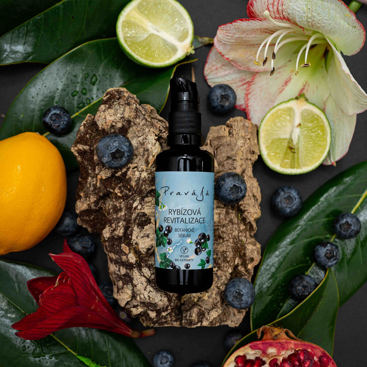 Botanické sérum Rybízová Revitalizace je směsí bio za studena lisovaných vzácných olejů, které vyživují, zjemňují texturu pokožky a pečují o kožní bariéru. Koncentrace černého rybízu s pomerančem pleť rozjasňuje vysokým obsahem vitaminů a omega-6 mastných kyselin. Ty se postarají o intenzivní revitalizaci a rozjasnění pokožky.