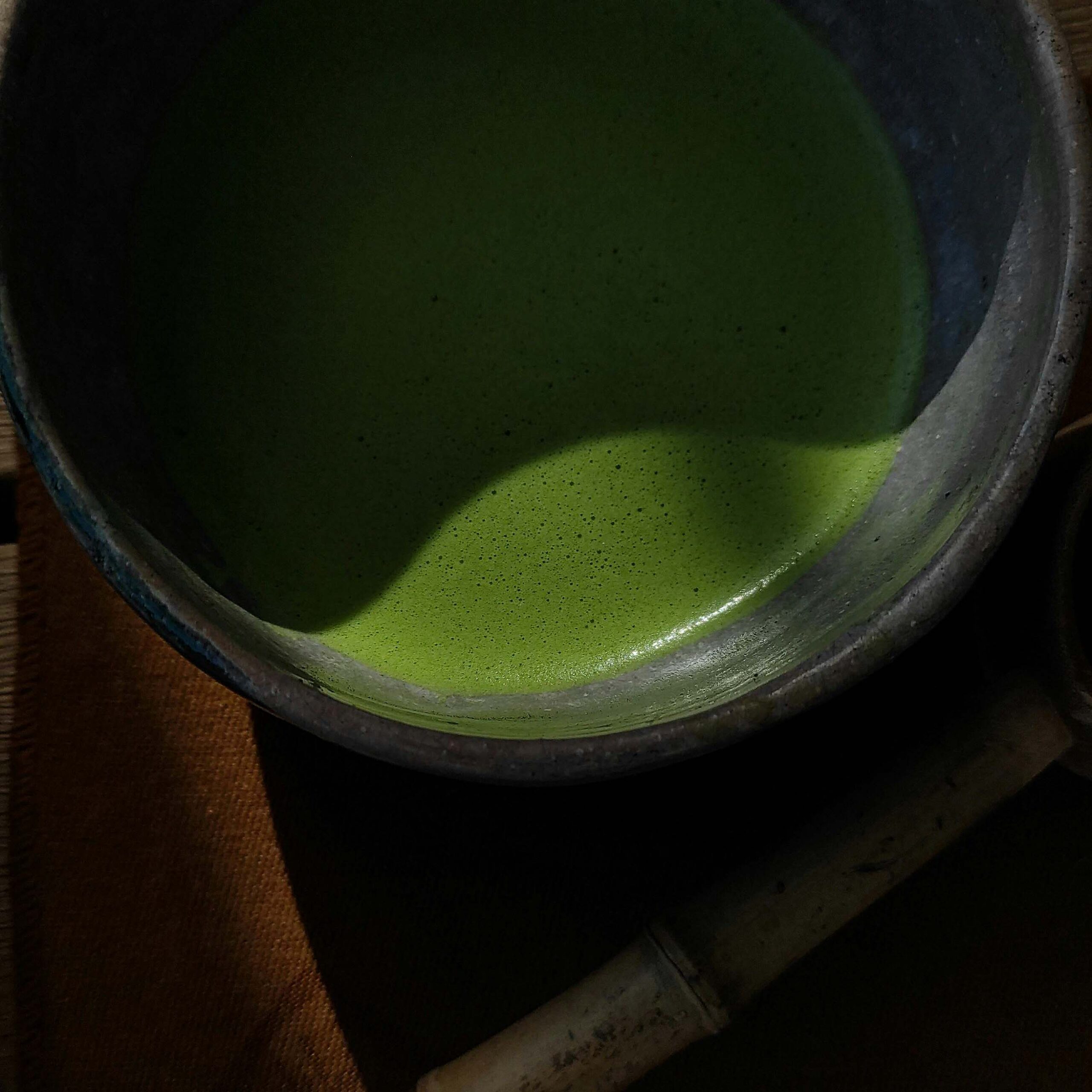 Před samotnou přípravou nalijte do misky trochu horké vody. Keramika se prohřeje, což je příjemné i pro naše dlaně a zároveň tím připravíme povrch na čaj. Vodu následně vylijeme a misku vytřeme čistým ubrouskem. Díky širokému a plochému dnu můžeme bambusovou metličkou volně pohybovat. Šleháme zápěstím ve tvaru písmene „M“ nebo „W“. Cílem je vytvořit hustou pěnu bez velkých bublinek. Při pití držíme misku v obou dlaních a můžeme vnímat teplo a vlastní prožitek.