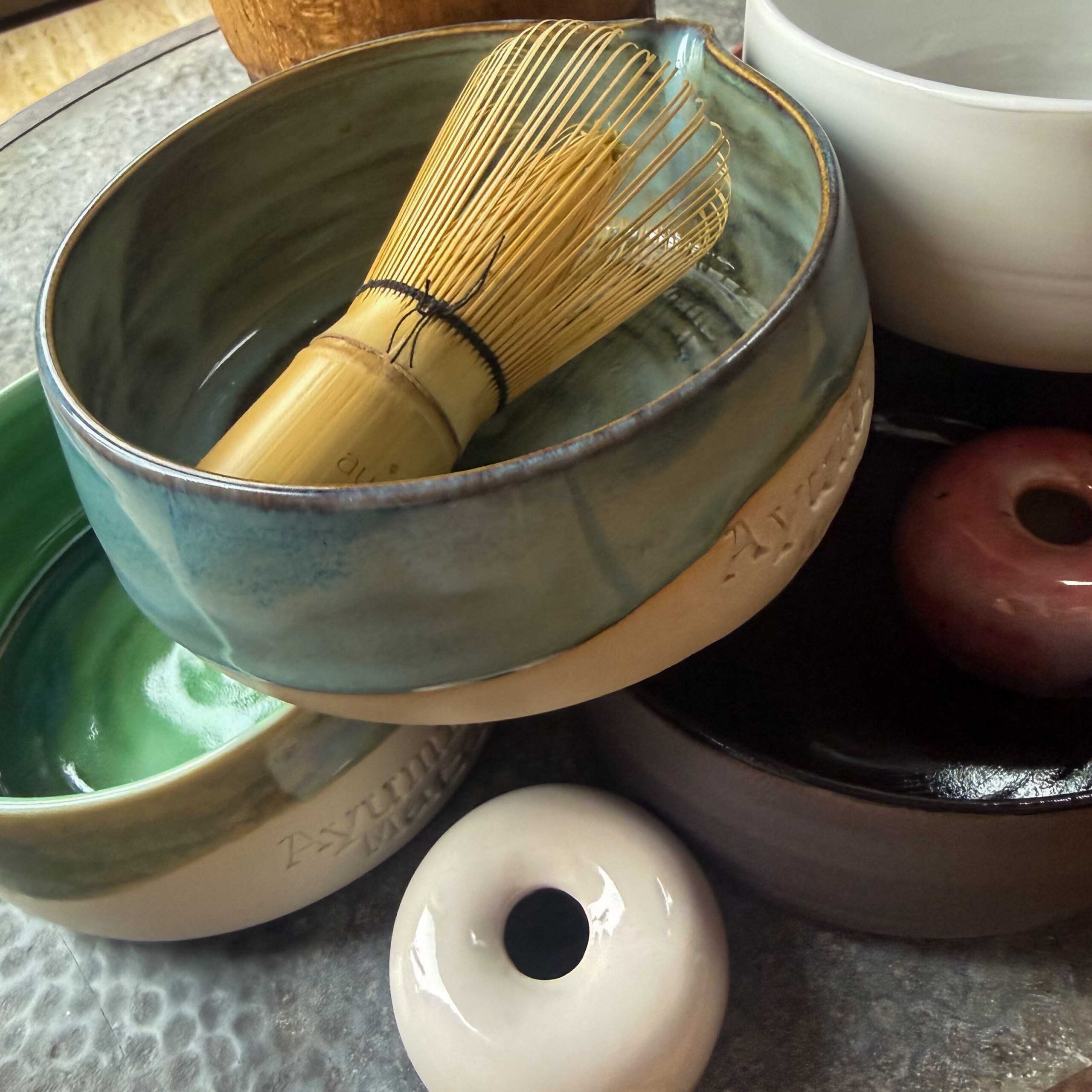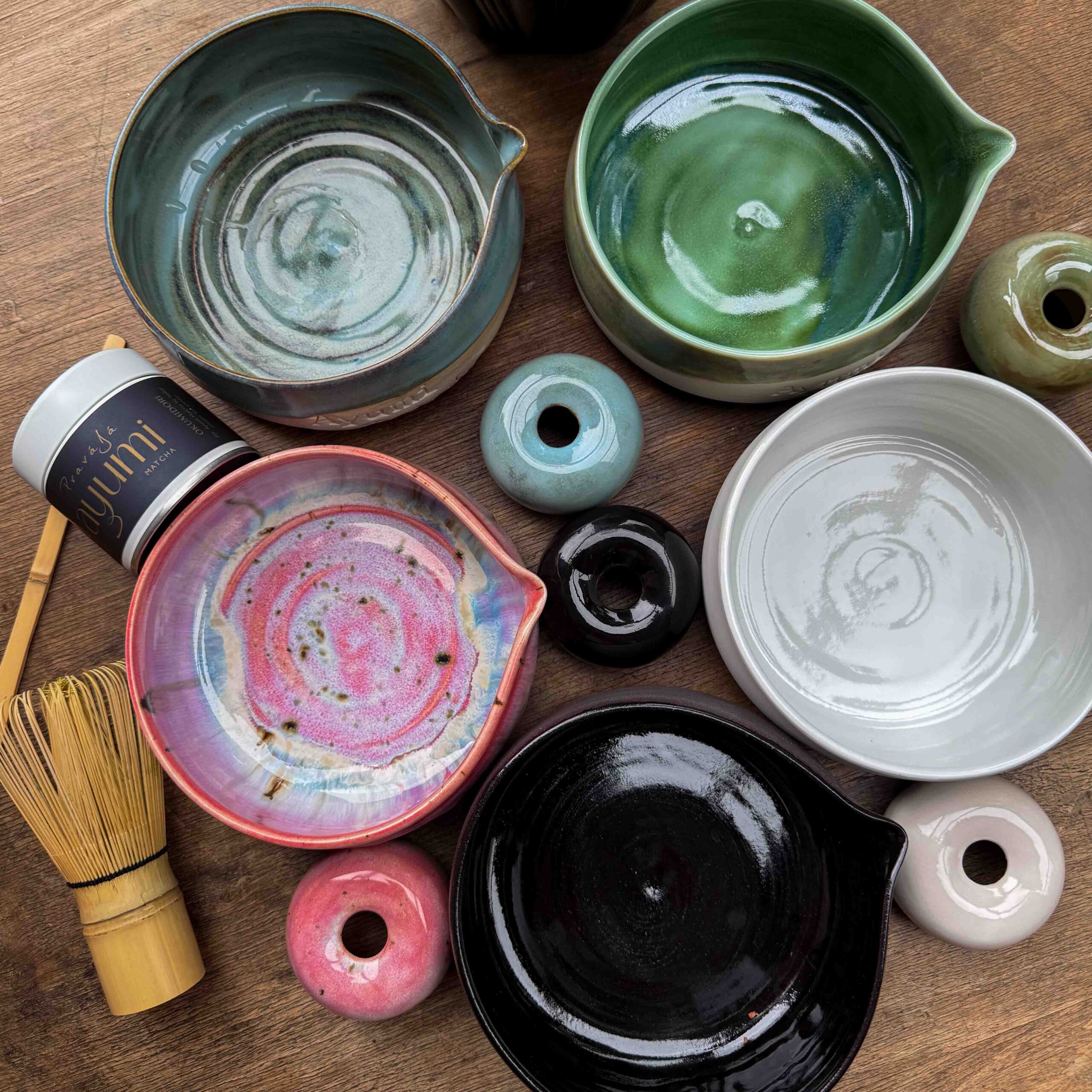 - Miska a stojánek na čaj matcha.